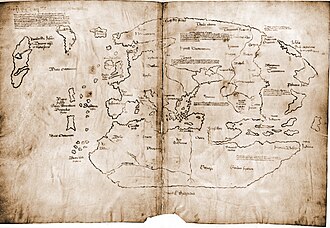 Polski: Uznawana jako XV-wieczna mapa świata, przerysowana z XIII-wiecznego oryginału, gdyby była prawdziwa zawierała by pierwszy znany opis wybrzeży Ameryki Północnej zwanej wówczas Vinland. Obecnie jednak na podstawie analizy składu atramentu jest uznawana za fałszerstwo powstałe po 1923 roku.